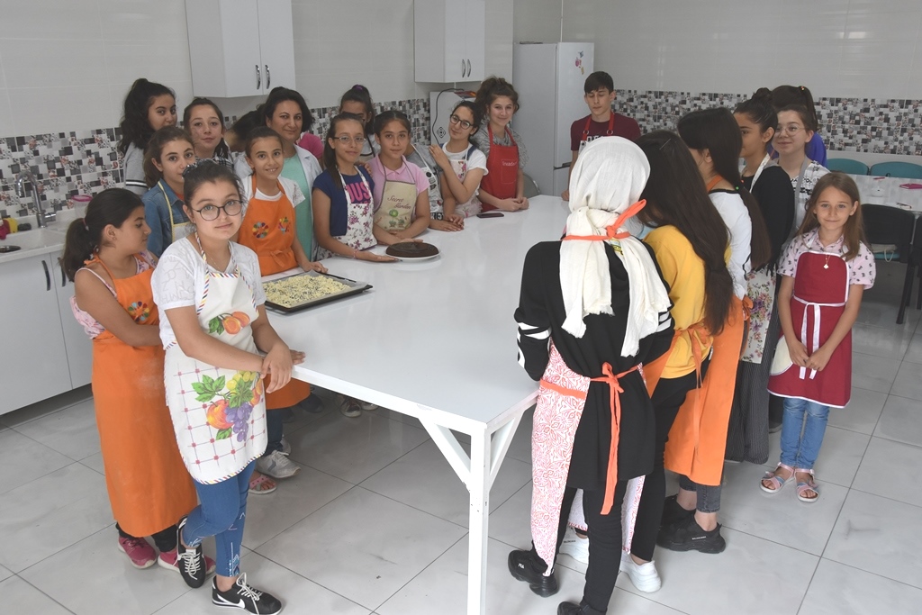 Pastacılık Kursu Eğitmeni Handan Gülmez ise “Çocuklarımız burada ilk olarak temel aşamaları öğreniyor. Hamur yoğurmasını, mutfak temizliğini ve iş yaparken nelere dikkat etmeleri gerektiğini anlatıyoruz. Pasta yapmanın püf noktaları öğretiyoruz. Çocuklarımız, aşçılığı ileride meslek olarak seçmeyi düşünüyorlar. Geleceğin ustaları buradan çıkabilir.” diye konuştu.