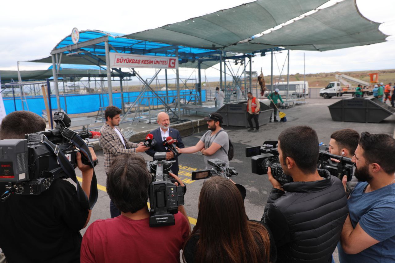 Kocasinan İlçe Tarım ve Orman Müdürü Abdülaziz Yıldırım ile birlikte kurban kesim ve satış yeri hakkında basın mensuplarına bilgiler aktaran Başkan Çolakbayrakdar, Kayserililere en iyi ve en kaliteli hizmeti vermek adına oluşturulan Erkilet Bülbül Pınarı mevkiindeki mobil kurban kesim yerinin teknolojik, hijyenik, sıhhi bir kesim alanı olması ve tüm detayların düşünülmüş olması dolasıyla vatandaşlarda memnuniyet oluşturduğunu ve Türkiye’de bu hizmeti yapan nadir belediyelerden biri olduklarını vurguladı.