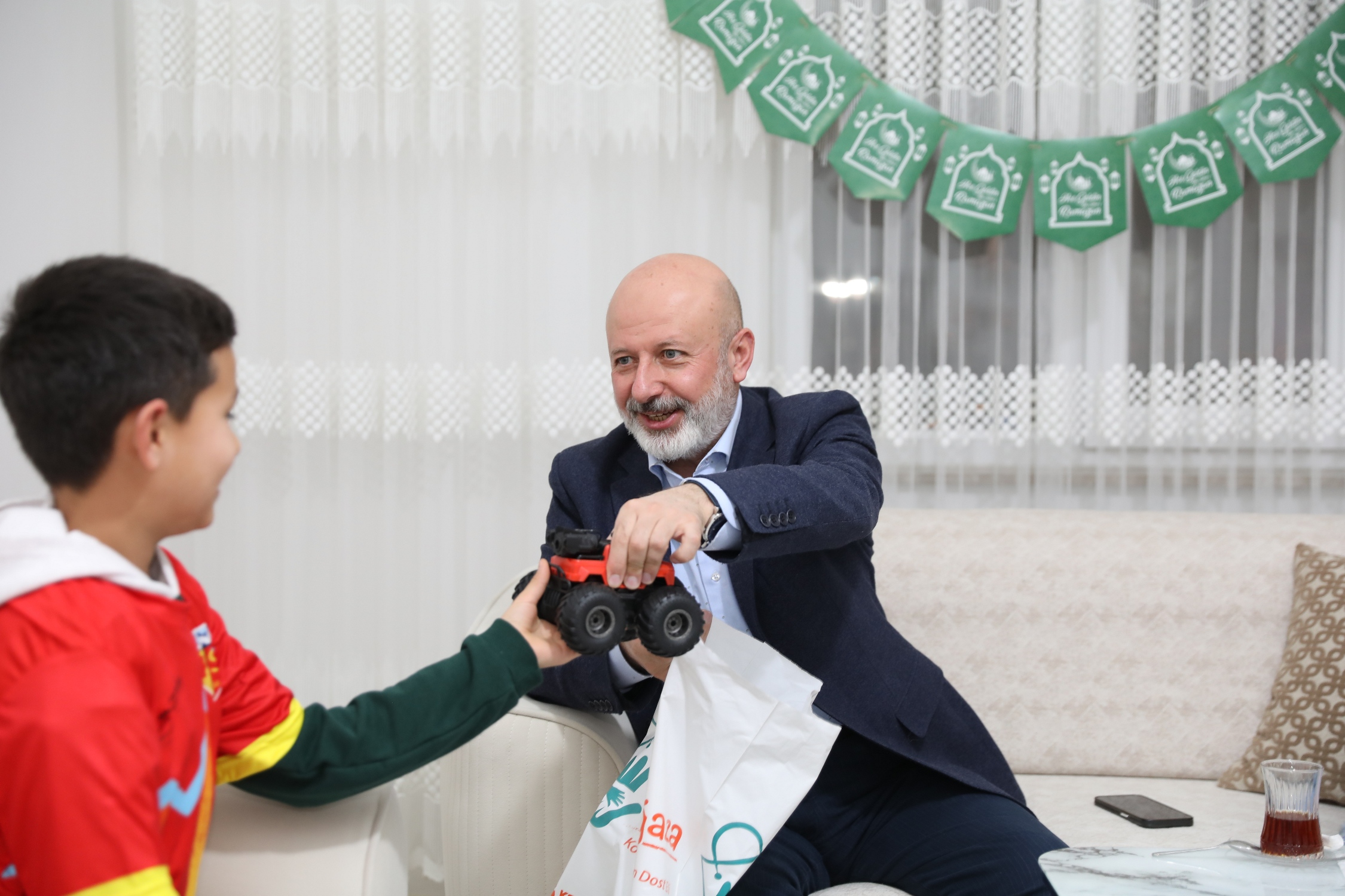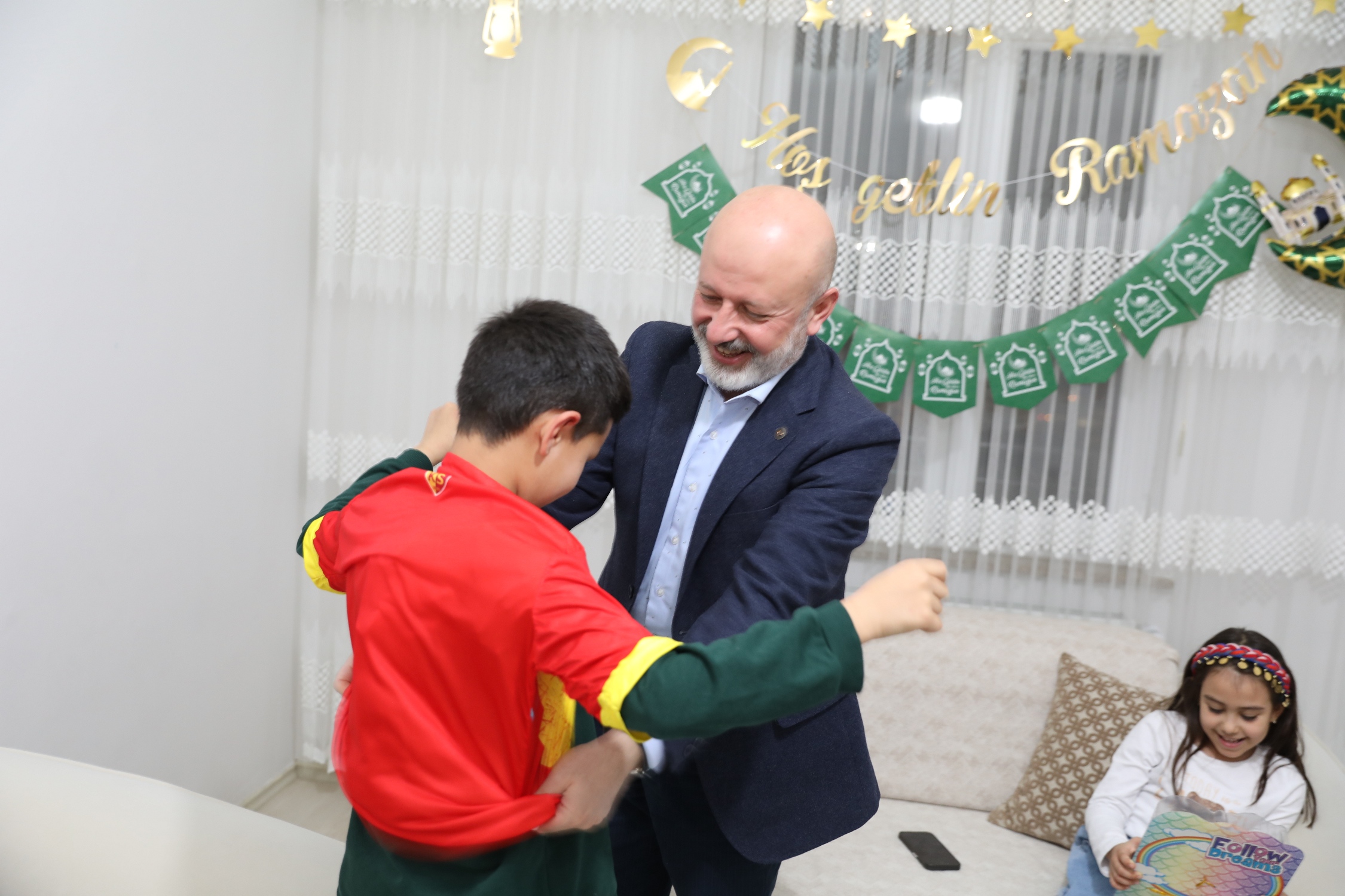 Ramazan’ın birlik, beraberlik, kardeşlik ve dayanışma ikliminin en güzel örneklerinden birine sahne olan ziyaret, sıcak ve samimi görüntülerle gönüllere dokundu. Ev sahibi Ayşe Özsoy (39) ve çocukları Ecem (6), Hatice (7) ve Semih (10) ile yakından ilgilenen Çolakbayrakdar çifti, çocuklarla sohbet ederek keyifli vakit geçirdi ve onların mutluluğuna ortak oldu.