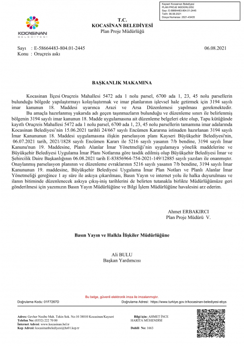 Oruçreis Mahallesi Askı İlanı